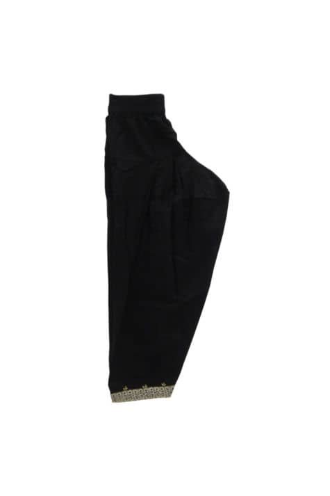 This plain black shalwar features gold embellishments at the edges. Fabric: Cotton Color: Black